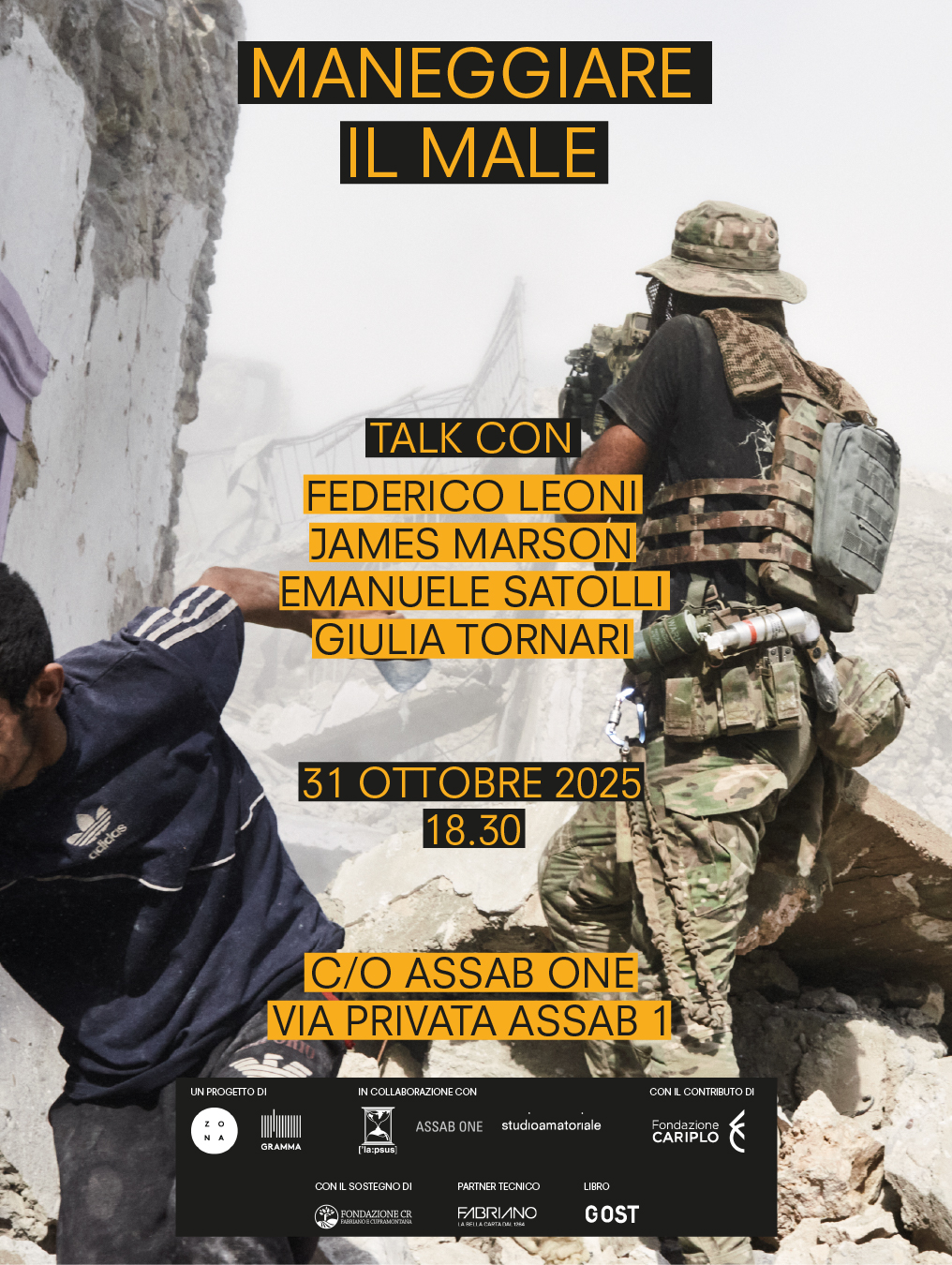 Attraverso il dialogo tra Emanuele Satolli, James Marson (The Wall Street Journal), la curatrice Giulia Tornari e il filosofo Federico Leoni, l’incontro indagherà il ruolo dello sguardo – di chi fotografa, di chi scrive, di chi cura e pensa le immagini – di fronte al male e alla sua rappresentazione.
